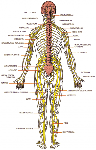腋神經(jīng)為臂叢后束的分支。 由于走行時(shí)緊貼肱骨外科頸,肩關(guān)節(jié)的骨折脫位,尤其是后脫位和肱骨上端骨折,肩后部的撞傷或打擊傷可造成腋神經(jīng)損傷。